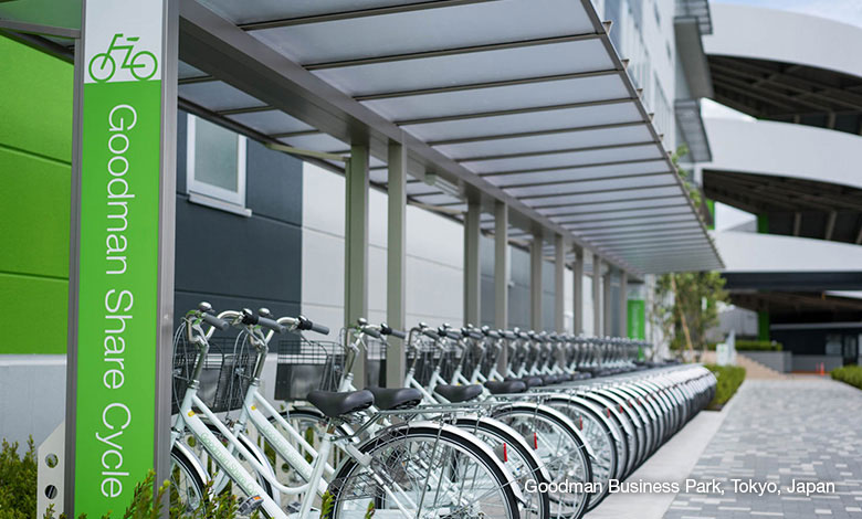 Sustainable developments aren’t just about how buildings function, they must also consider how people use them. In Japan, Goodman’s Business Park in Chiba Newtown, Tokyo was designed with comfort and customer amenity as priorities. Last year we completed Stage 1 of this master-planned, multi-stage development, where a free share bicycle service and a dedicated bus service to the nearest train station will form an important part of a dynamic mix of amenities, including retail, restaurants, café and a child care service.