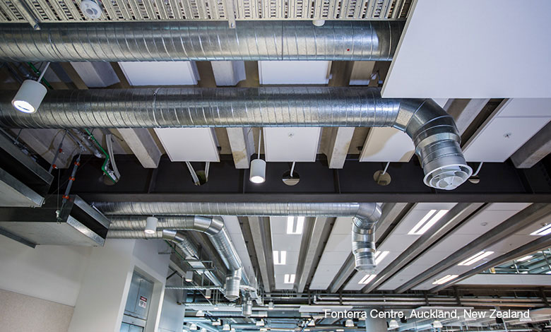 - Outdoor air supplied from exposed stainless ducts on the north and south external elevations;