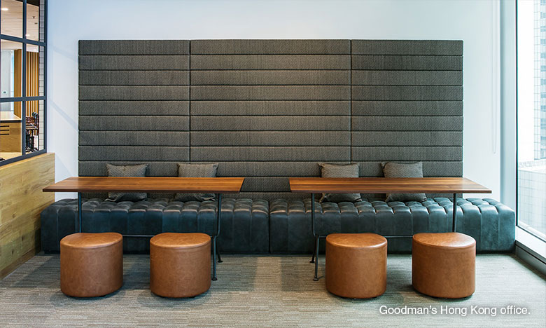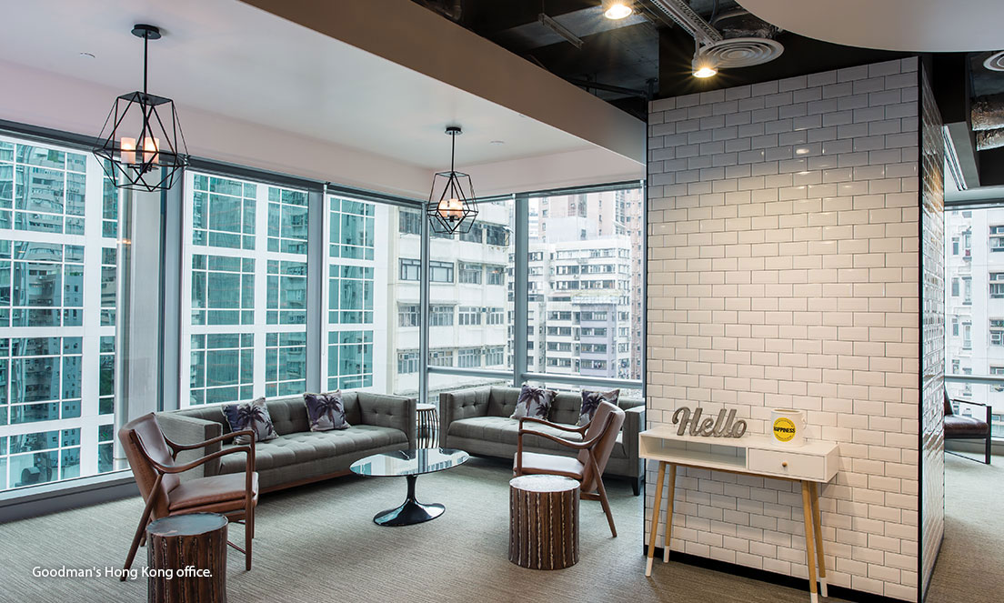 - LEED-certified fitout for Goodman’s Hong Kong office; and